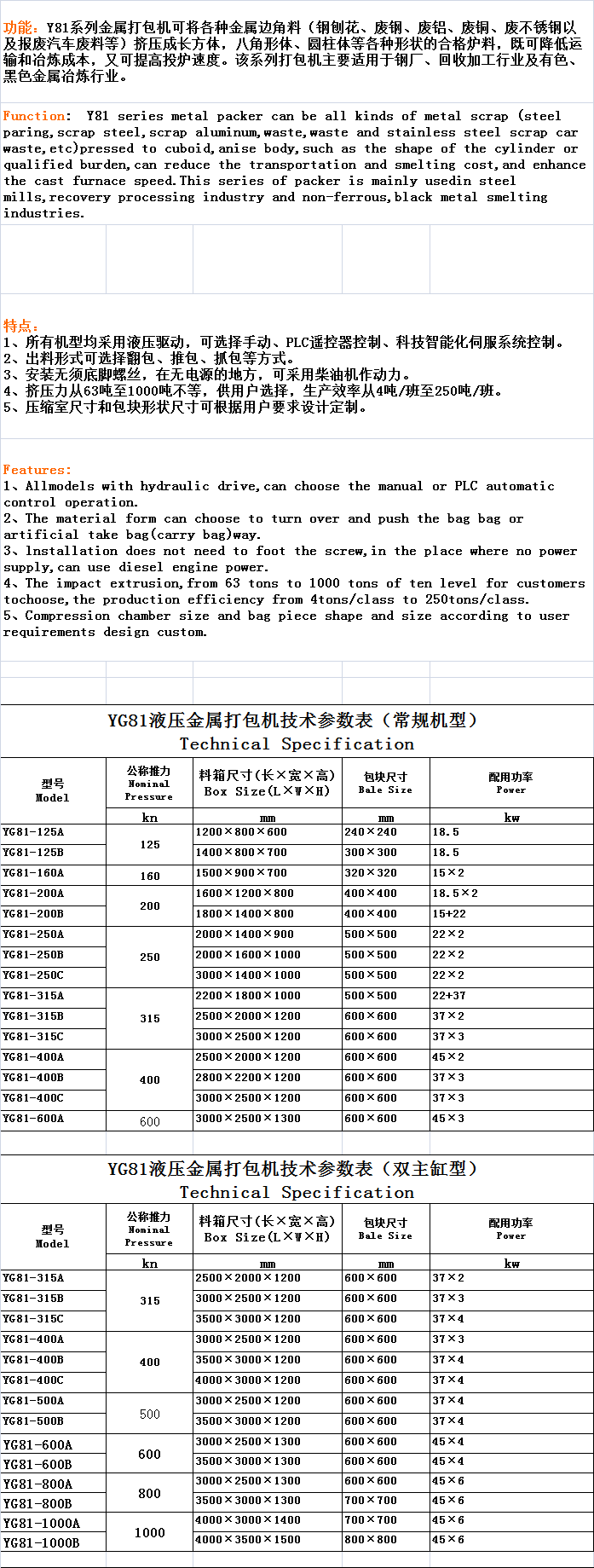 YG81智能高速雙主缸打包機發(fā)布日期:2019/9/27 15:59:26 所屬分類: 智能高速(高密度)雙主缸打包機系列 瀏覽次數(shù):4208次 上一個:YG81不銹鋼廢料扎包機 備注: 1、 產(chǎn)品目錄不包含所有產(chǎn)品,公司可以根據(jù)用戶的需求設(shè)計定制產(chǎn)品。 2、 產(chǎn)品技術(shù)參數(shù)如有變更,恕不另行通知,實際參數(shù)以合同約定為準(zhǔn)。 |