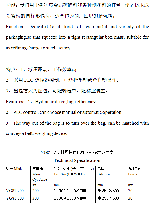 發布日期:2019/9/27 16:38:34 所屬分類: YG81破碎料圓柱翻包打包機 瀏覽次數:4177次